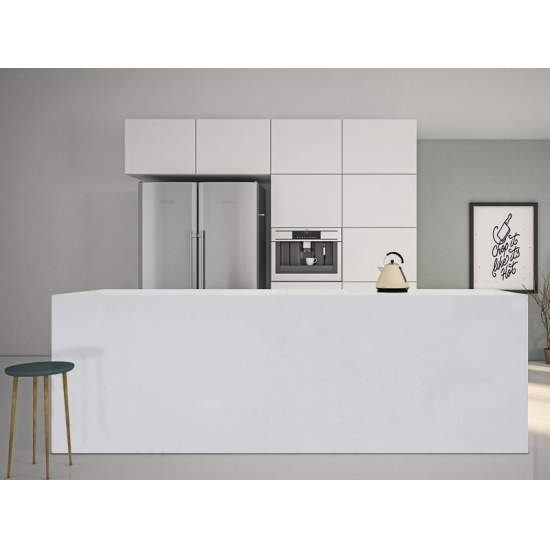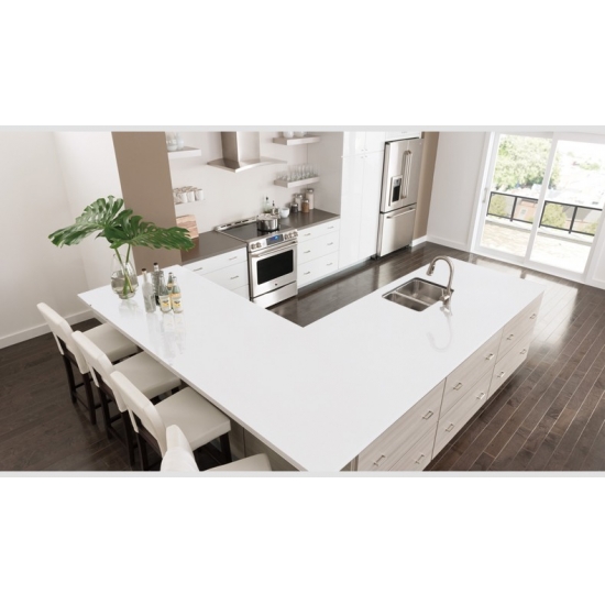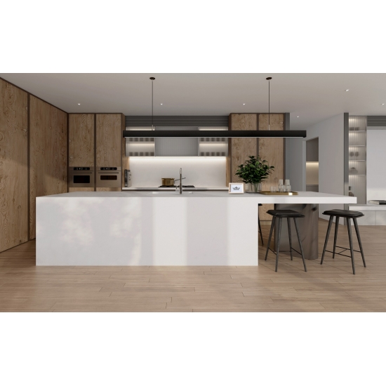 スパークルピュアホワイトクォーツは、他のシリーズとは異なり、より輝く外観を持つ特殊加工を施した人工石英石です。壁、床、カウンタートップなどに設置することで、奥行きと質感を与えます。バスルームやキッチンの壁面装飾や洗面台のバックスプラッシュなど、美しい装飾にお使いいただけます。また、無菌性と耐湿性を備えているため、湿気の多い場所に最適です。