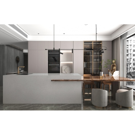 輝くピュアライトグレークォーツカウンタートップで、キッチンやバスルームを贅沢なオアシスに変身させましょう。ゴールドトップクォーツサプライヤーから仕入れた高品質な素材を使用したこれらのカウンタートップは、あらゆる空間にエレガントな雰囲気を添えます。当社の専門チームがお客様とご相談の上、お客様独自のスタイルに合わせてカウンタートップをカスタマイズし、完璧なセンスを反映させた住まいを実現します。