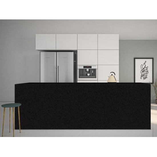 ジェットブラックスパークルクォーツは、他のシリーズとは異なり、より輝く外観を持つ特殊加工を施した人工石英石です。壁、床、カウンタートップなどに設置することで、奥行きと質感を与えます。バスルームやキッチンの壁面装飾や洗面台のバックスプラッシュなどにご使用いただけます。無菌性と耐湿性を備えているため、湿気の多い場所にも最適です。