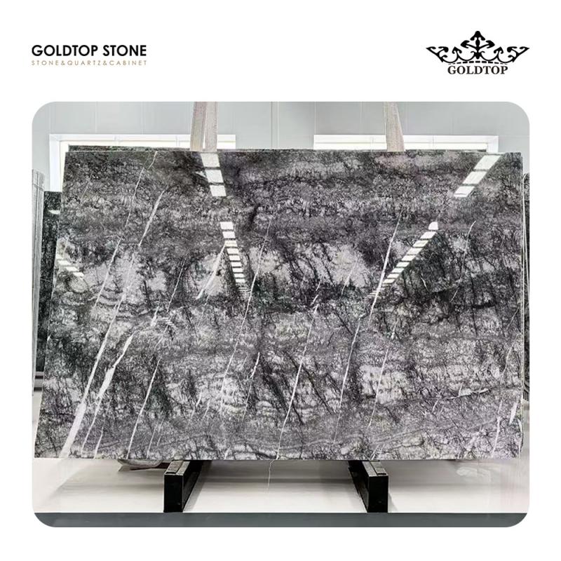 イタリア産シルバーファー大理石: 洗練された贅沢の象徴であるイタリア産シルバーファー大理石は、その独特のバリエーションから フィオール・ディ・ボスコ または深みのあるシルバー グレーの大理石は、木炭色から濃い黒まで変化するドラマチックなダークなベースに、複雑な白い縞模様と時折輝く金色のアクセントが優雅に描かれていることで高く評価されています。