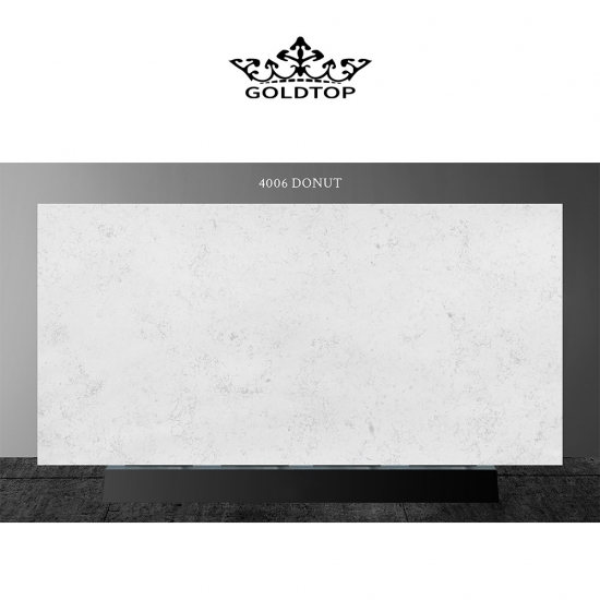 4006 ドーナツ型大理石クォーツスラブ 天然大理石にインスピレーションを得た、洗練されたエレガントな外観。柔らかなライトトーンの背景に、繊細で流れるような縞模様がアクセントを添えています。表面はバランスと洗練さを醸し出し、柔らかな縞模様がデザインを主張することなく、さりげない動きと深みを与えています。このクォーツスラブは、明るく時代を超越した雰囲気を演出するのに最適で、住宅と商業空間の両方に控えめな高級感と汎用性をもたらします。