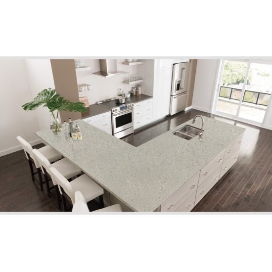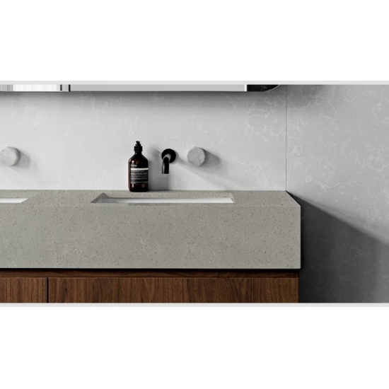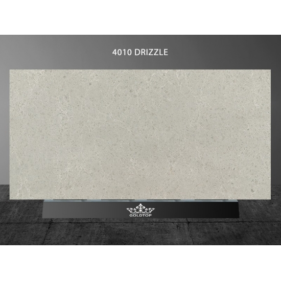 4010 ドリズルマーブルクォーツスラブ 柔らかなホワイトを基調に、繊細なグレーの縞模様が優しく流れる、洗練されたエレガントな外観です。大理石を思わせる繊細な模様は、落ち着きと軽やかな美しさを演出し、バランス感覚と自然な動きをもたらします。控えめな高級感を漂わせるこのクォーツは、清潔感があり、時代を超越した洗練された空間を求める空間に最適です。