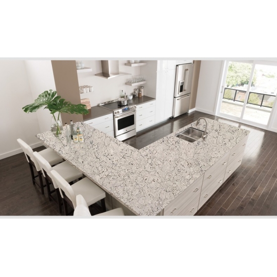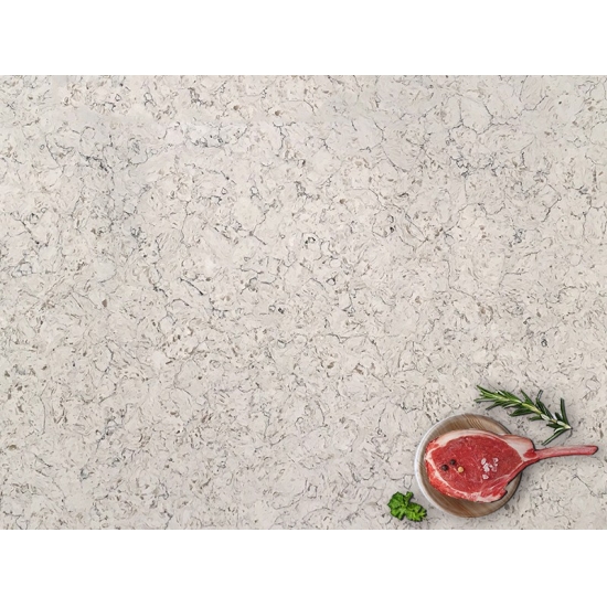 4012 リバークレママーブルクォーツスラブ 温かみのあるエレガントな外観。柔らかなクリーム色のベースに、天然大理石をイメージした優しく流れるような縞模様がアクセントを添えています。表面は洗練された時代を超越した魅力を放ち、繊細な縞模様が全体のデザインを圧迫することなく、さりげない動きと深みを与えています。このクォーツスラブは、空間に温かみと洗練さをもたらすようにデザインされており、バランスの取れたラグジュアリーな美を求める住宅および商業施設のインテリアに最適です。