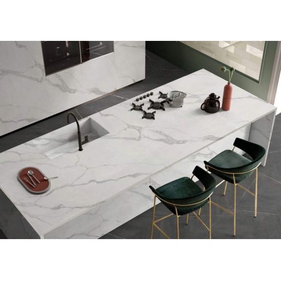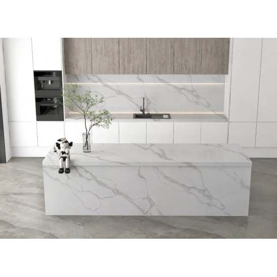 カラカッタシリーズのクォーツは、現在最も人気のあるクォーツストーン製品です。精巧でユニークなカラカッタクォーツは、その澄んだ白と、大理石のような印象的な縞模様が五感を魅了します。美しく印象的な幅広の縞模様と高級感のある質感が特徴です。カラカッタ大理石の自然な外観を保ちながら、大理石のワークトップにありがちな欠点は一切ありません。カラカッタクォーツは、汚れや傷に強い耐久性の高いワークトップです。キッチンやバスルームのカウンタートップ、階段、窓枠、カスタム家具、内装、外壁、床、ウォータージェット模様、その他のデザインプロジェクトなど、実用性も兼ね備えています。