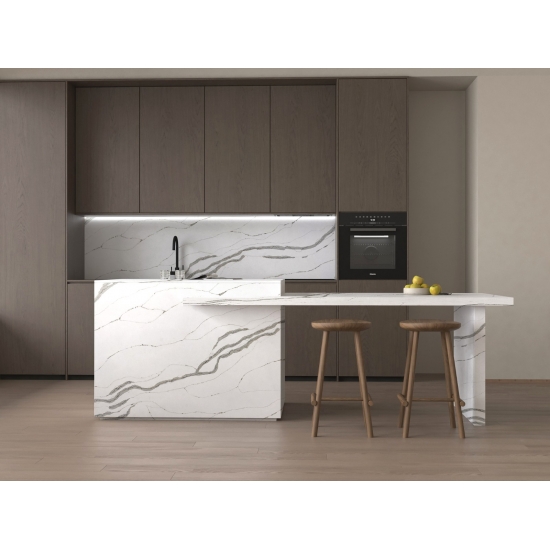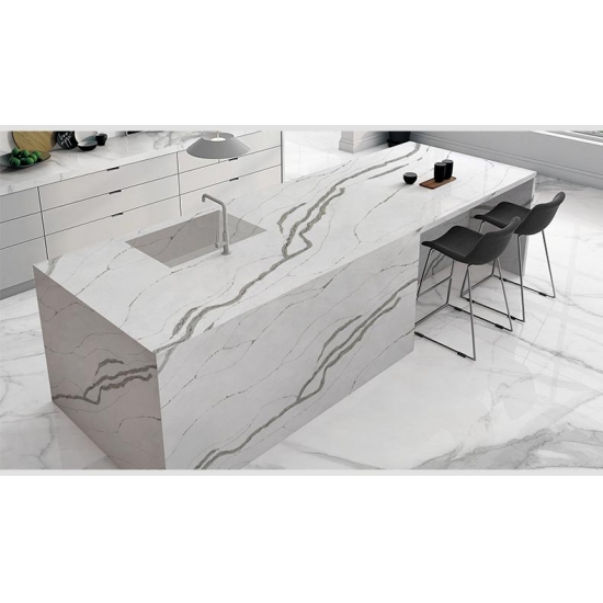 カラカッタクォーツは天然成分から作られていますが、強度と耐久性に優れ、気孔率が低いため、クォーツ製の石製品は実質的に摩耗しません。耐久性、快適性、そして均一な模様が、クォーツストーンの人気が高まっている主な理由です。クォーツストーンは90%が天然石で、残りは石の技術的特性を向上させる接着剤、染料、添加剤です。透水性と耐汚染性は、クォーツストーンの美しさをさらに引き立てます。