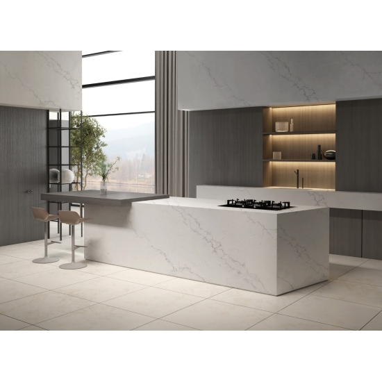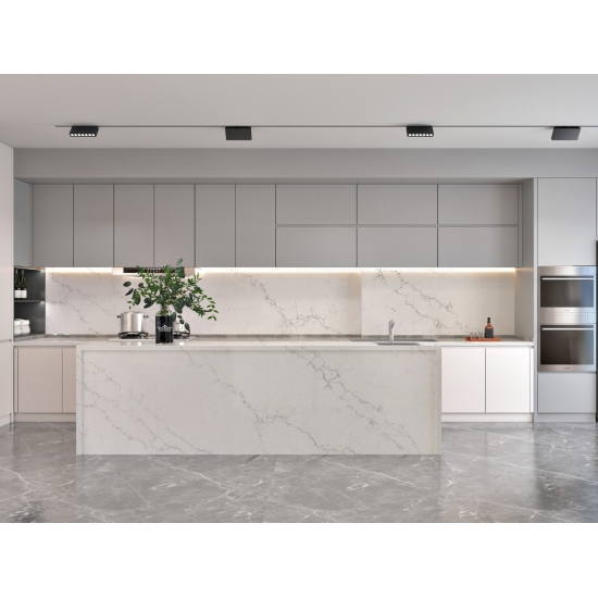 カラカッタシリーズのクォーツは、現在最も人気のあるクォーツストーン製品です。精巧でユニークなカラカッタクォーツは、その澄んだ白と、大理石のような印象的な縞模様が五感を魅了します。美しく印象的な幅広の縞模様と高級感のある質感が特徴です。カラカッタ大理石の自然な外観を保ちながら、大理石のワークトップにありがちな欠点は一切ありません。カラカッタクォーツは、汚れや傷に強い耐久性の高いワークトップです。キッチンやバスルームのカウンタートップ、階段、窓枠、カスタム家具、内装、外壁、床、ウォータージェット模様、その他のデザインプロジェクトなど、実用性も兼ね備えています。