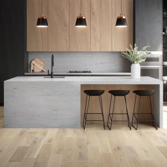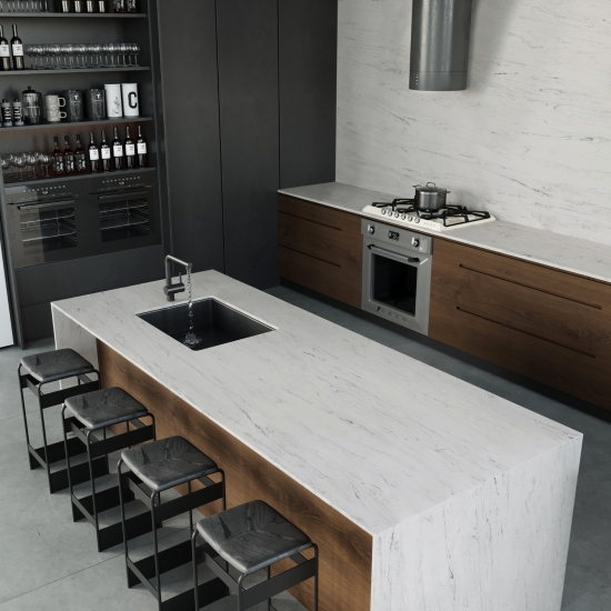 精巧で個性的なカラカッタクォーツは、その澄んだ白と、大理石を思わせる印象的な縞模様が五感を魅了します。美しく印象的な幅広の縞模様と、高級感あふれる質感が特徴です。カラカッタ大理石の自然な風合いを保ちながら、大理石のワークトップにありがちな欠点は一切ありません。カラカッタクォーツは、汚れや傷に強い耐久性の高いワークトップです。キッチンやバスルームのカウンタートップ、階段、窓枠、カスタム家具、内装、外壁、床、ウォータージェット模様など、様々なデザインプロジェクトに最適です。