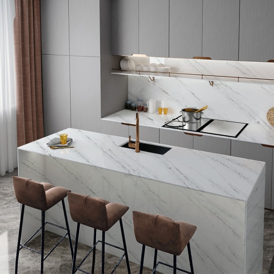 カラカッタシリーズのクォーツは、現在最も人気のあるクォーツストーン製品です。精巧でユニークなカラカッタクォーツは、その澄んだ白と、大理石のような印象的な縞模様が五感を魅了します。美しく印象的な幅広の縞模様と高級感のある質感が特徴です。カラカッタ大理石の自然な外観を保ちながら、大理石のワークトップにありがちな欠点は一切ありません。カラカッタクォーツは、汚れや傷に強い耐久性の高いワークトップです。キッチンやバスルームのカウンタートップ、階段、窓枠、カスタム家具、内装、外壁、床、ウォータージェット模様、その他のデザインプロジェクトなど、実用性も兼ね備えています。