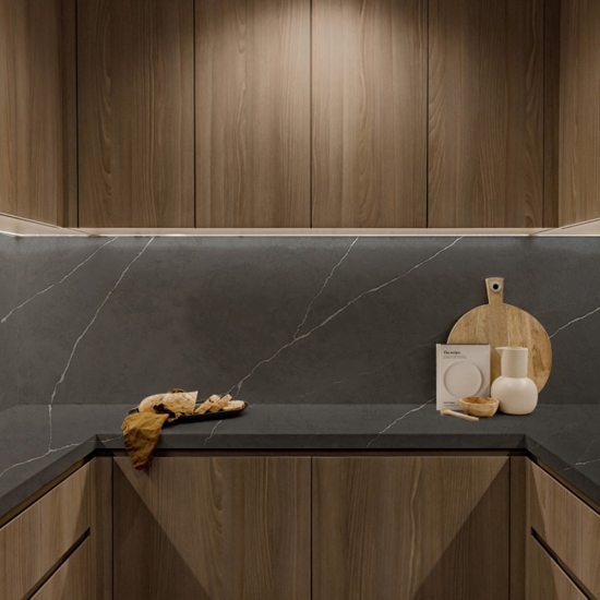 カラカッタシリーズのクォーツは、現在最も人気のあるクォーツストーン製品です。精巧でユニークなカラカッタクォーツは、その澄んだ白と、大理石のような印象的な縞模様が五感を魅了します。美しく印象的な幅広の縞模様と高級感のある質感が特徴です。カラカッタ大理石の自然な外観を保ちながら、大理石のワークトップにありがちな欠点は一切ありません。カラカッタクォーツは、汚れや傷に強い耐久性の高いワークトップです。キッチンやバスルームのカウンタートップ、階段、窓枠、カスタム家具、内装、外壁、床、ウォータージェット模様、その他のデザインプロジェクトなど、実用性も兼ね備えています。