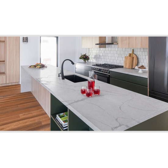 カラカッタクォーツは天然成分から作られていますが、強度と耐久性に優れ、気孔率が低いため、クォーツ製の石製品は実質的に摩耗しません。耐久性、快適性、そして均一な模様が、クォーツストーンの人気が高まっている主な理由です。クォーツストーンは90%が天然石で、残りは石の技術的特性を向上させる接着剤、染料、添加剤です。透水性と耐汚染性は、クォーツストーンの美しさをさらに引き立てます。