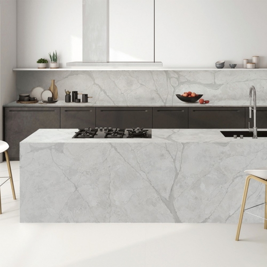 カラカッタシリーズのクォーツは、現在最も人気のあるクォーツストーン製品です。精巧でユニークなカラカッタクォーツは、その澄んだ白と、大理石のような印象的な縞模様が五感を魅了します。美しく印象的な幅広の縞模様と高級感のある質感が特徴です。カラカッタ大理石の自然な外観を保ちながら、大理石のワークトップにありがちな欠点は一切ありません。カラカッタクォーツは、汚れや傷に強い耐久性の高いワークトップです。キッチンやバスルームのカウンタートップ、階段、窓枠、カスタム家具、内装、外壁、床、ウォータージェット模様、その他のデザインプロジェクトなど、実用性も兼ね備えています。