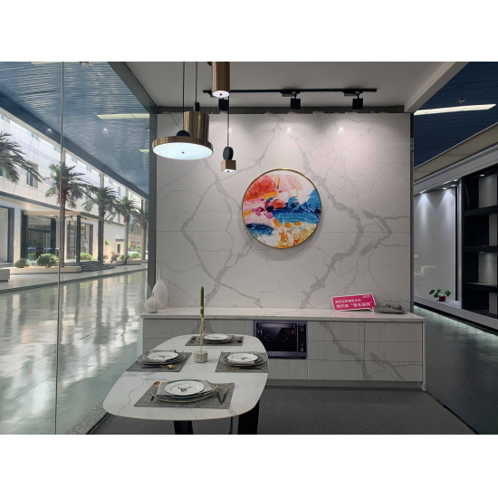 カラカッタクォーツは天然成分から作られていますが、強度と耐久性に優れ、気孔率が低いため、クォーツ製の石製品は実質的に摩耗しません。耐久性、快適性、そして均一な模様が、クォーツストーンの人気が高まっている主な理由です。クォーツストーンは90%が天然石で、残りは石の技術的特性を向上させる接着剤、染料、添加剤です。透水性と耐汚染性は、クォーツストーンの美しさをさらに引き立てます。