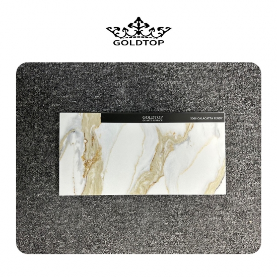 5066 カラカッタ フェンディ クォーツ スラブは、様々な床材にマッチするエレガントで洗練された選択肢です。これらのスラブは、美しい白地に、グレーとゴールドの色合いでドラマチックで大胆な縞模様が織りなしています。縞模様は天然のカラカッタ大理石のクラシックな外観を模倣しながらも、クォーツならではの耐久性とメンテナンスの容易さを備えています。
