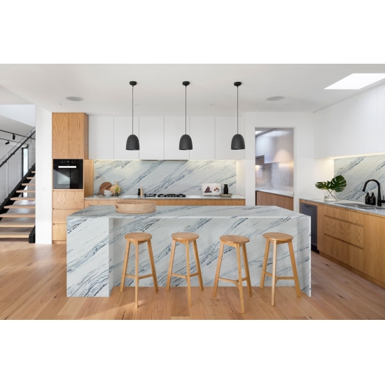 精巧で個性的なカラカッタクォーツは、その澄んだ白と、大理石を思わせる印象的な縞模様が五感を魅了します。美しく印象的な幅広の縞模様と、高級感あふれる質感が特徴です。カラカッタ大理石の自然な風合いを保ちながら、大理石のワークトップにありがちな欠点は一切ありません。カラカッタクォーツは、汚れや傷に強い耐久性の高いワークトップです。キッチンやバスルームのカウンタートップ、階段、窓枠、カスタム家具、内装、外壁、床、ウォータージェット模様など、様々なデザインプロジェクトに最適です。