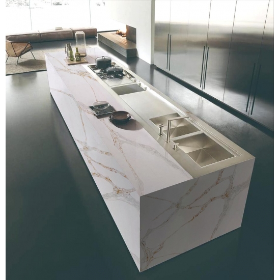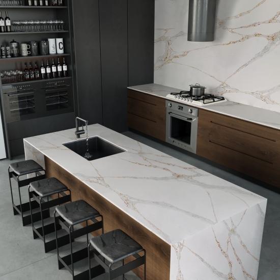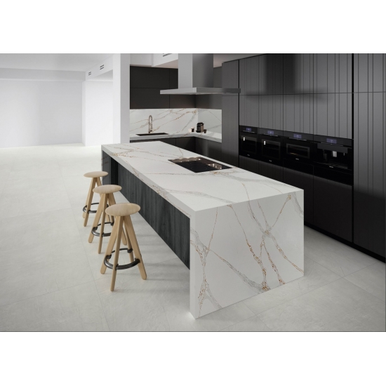 カラカッタシリーズのクォーツは、現在最も人気のあるクォーツストーン製品です。精巧でユニークなカラカッタクォーツは、その澄んだ白と、大理石のような印象的な縞模様が五感を魅了します。美しく印象的な幅広の縞模様と高級感のある質感が特徴です。カラカッタ大理石の自然な外観を保ちながら、大理石のワークトップにありがちな欠点は一切ありません。カラカッタクォーツは、汚れや傷に強い耐久性の高いワークトップです。キッチンやバスルームのカウンタートップ、階段、窓枠、カスタム家具、内装、外壁、床、ウォータージェット模様、その他のデザインプロジェクトなど、実用性も兼ね備えています。