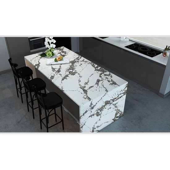 カラカッタクォーツは天然成分から作られていますが、強度と耐久性に優れ、気孔率が低いため、クォーツ製の石製品は実質的に摩耗しません。耐久性、快適性、そして均一な模様が、クォーツストーンの人気が高まっている主な理由です。クォーツストーンは90%が天然石で、残りは石の技術的特性を向上させる接着剤、染料、添加剤です。透水性と耐汚染性は、クォーツストーンの美しさをさらに引き立てます。