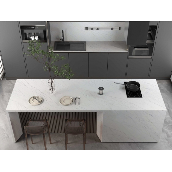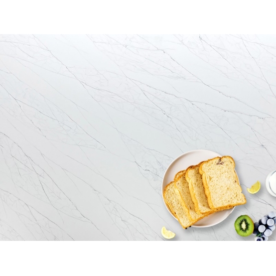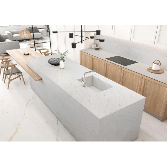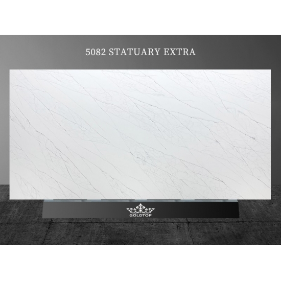 5082 カラカッタ スタチュアリー エクストラ クォーツ スラブ - 洗練されたタイムレスな雰囲気を求めるあらゆる住まいに、きっとご満足いただけるはずです。繊細な縞模様と贅沢な質感が、天然大理石の優雅さを体現するスラブです。カラカッタ スタチュアリー エクストラ クォーツは、キッチンカウンター、バスルームの洗面台、暖炉の周囲など、あらゆるお部屋に魅力的なフォーカルポイントを演出します。