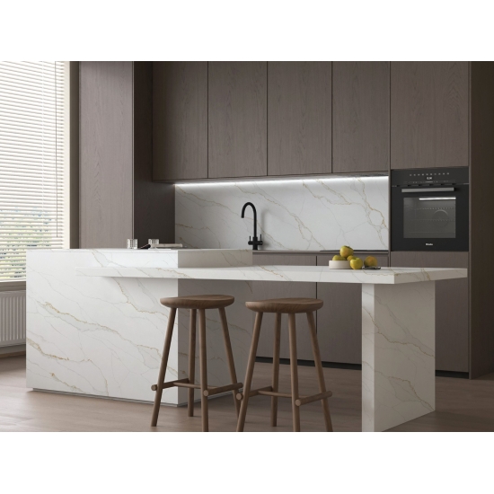 精巧で個性的なカラカッタクォーツは、その澄んだ白と、大理石を思わせる印象的な縞模様が五感を魅了します。美しく印象的な幅広の縞模様と、高級感あふれる質感が特徴です。カラカッタ大理石の自然な風合いを保ちながら、大理石のワークトップにありがちな欠点は一切ありません。カラカッタクォーツは、汚れや傷に強い耐久性の高いワークトップです。キッチンやバスルームのカウンタートップ、階段、窓枠、カスタム家具、内装、外壁、床、ウォータージェット模様など、様々なデザインプロジェクトに最適です。