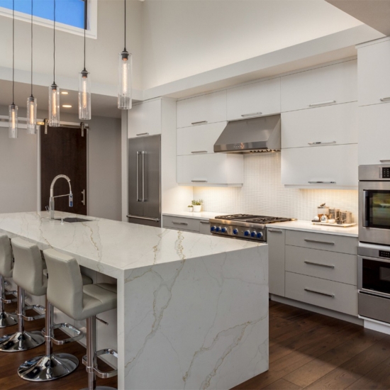 カラカッタシリーズのクォーツは、現在最も人気のあるクォーツストーン製品です。精巧でユニークなカラカッタクォーツは、その澄んだ白と、大理石のような印象的な縞模様が五感を魅了します。美しく印象的な幅広の縞模様と高級感のある質感が特徴です。カラカッタ大理石の自然な外観を保ちながら、大理石のワークトップにありがちな欠点は一切ありません。カラカッタクォーツは、汚れや傷に強い耐久性の高いワークトップです。キッチンやバスルームのカウンタートップ、階段、窓枠、カスタム家具、内装、外壁、床、ウォータージェット模様、その他のデザインプロジェクトなど、実用性も兼ね備えています。