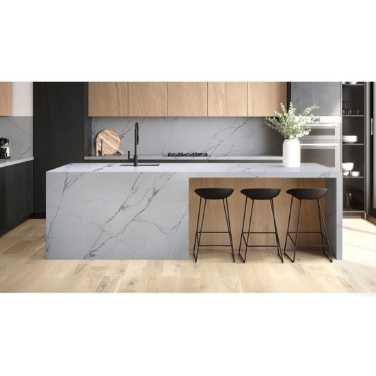 50 Square Meters精巧で個性的なカラカッタクォーツは、その澄んだ白と、大理石を思わせる印象的な縞模様が五感を魅了します。美しく印象的な幅広の縞模様と、高級感あふれる質感が特徴です。カラカッタ大理石の自然な風合いを保ちながら、大理石のワークトップにありがちな欠点は一切ありません。カラカッタクォーツは、汚れや傷に強い耐久性の高いワークトップです。キッチンやバスルームのカウンタートップ、階段、窓枠、カスタム家具、内装、外壁、床、ウォータージェット模様など、様々なデザインプロジェクトに最適です。