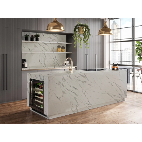 精巧で個性的なカラカッタクォーツは、その澄んだ白と、大理石を思わせる印象的な縞模様が五感を魅了します。美しく印象的な幅広の縞模様と、高級感あふれる質感が特徴です。カラカッタ大理石の自然な風合いを保ちながら、大理石のワークトップにありがちな欠点は一切ありません。カラカッタクォーツは、汚れや傷に強い耐久性の高いワークトップです。キッチンやバスルームのカウンタートップ、階段、窓枠、カスタム家具、内装、外壁、床、ウォータージェット模様など、様々なデザインプロジェクトに最適です。