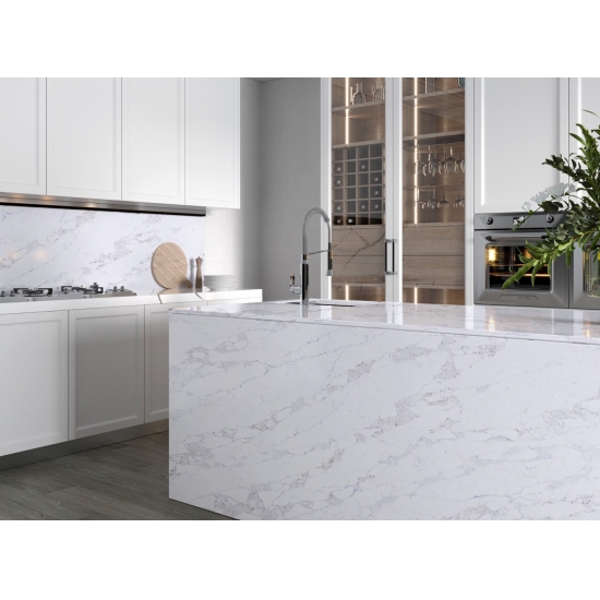 カラカッタシリーズのクォーツは、現在最も人気のあるクォーツストーン製品です。精巧でユニークなカラカッタクォーツは、その澄んだ白と、大理石のような印象的な縞模様が五感を魅了します。美しく印象的な幅広の縞模様と高級感のある質感が特徴です。カラカッタ大理石の自然な外観を保ちながら、大理石のワークトップにありがちな欠点は一切ありません。カラカッタクォーツは、汚れや傷に強い耐久性の高いワークトップです。キッチンやバスルームのカウンタートップ、階段、窓枠、カスタム家具、内装、外壁、床、ウォータージェット模様、その他のデザインプロジェクトなど、実用性も兼ね備えています。