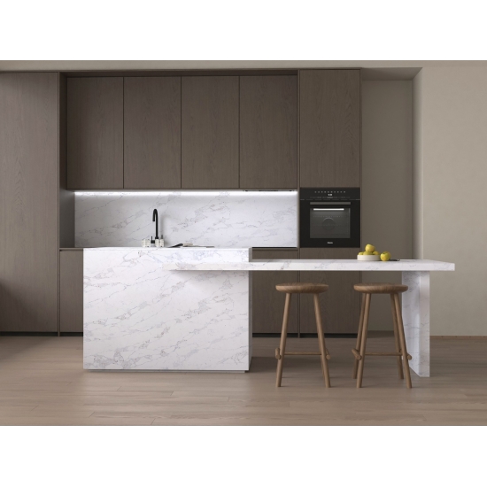 精巧で個性的なカラカッタクォーツは、その澄んだ白と、大理石を思わせる印象的な縞模様が五感を魅了します。美しく印象的な幅広の縞模様と、高級感あふれる質感が特徴です。カラカッタ大理石の自然な風合いを保ちながら、大理石のワークトップにありがちな欠点は一切ありません。カラカッタクォーツは、汚れや傷に強い耐久性の高いワークトップです。キッチンやバスルームのカウンタートップ、階段、窓枠、カスタム家具、内装、外壁、床、ウォータージェット模様など、様々なデザインプロジェクトに最適です。