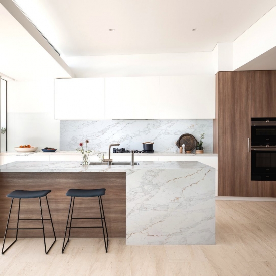 精巧で個性的なカラカッタクォーツは、その澄んだ白と、大理石を思わせる印象的な縞模様が五感を魅了します。美しく印象的な幅広の縞模様と、高級感あふれる質感が特徴です。カラカッタ大理石の自然な風合いを保ちながら、大理石のワークトップにありがちな欠点は一切ありません。カラカッタクォーツは、汚れや傷に強い耐久性の高いワークトップです。キッチンやバスルームのカウンタートップ、階段、窓枠、カスタム家具、内装、外壁、床、ウォータージェット模様など、様々なデザインプロジェクトに最適です。