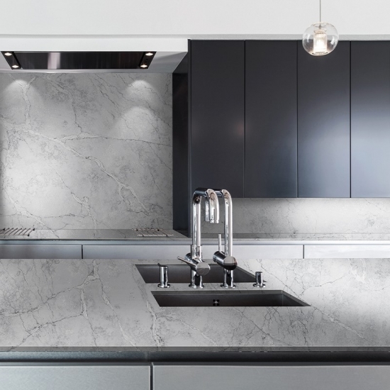 コンクリートクォーツは、特殊加工された人工石クォーツ素材です。マット仕上げに似たコンクリート仕上げは、従来のポリッシュ仕上げに比べてクォーツの色がわずかに変化します。この仕上げは、花崗岩の場合、「ブラッシュ仕上げ」とも呼ばれます。