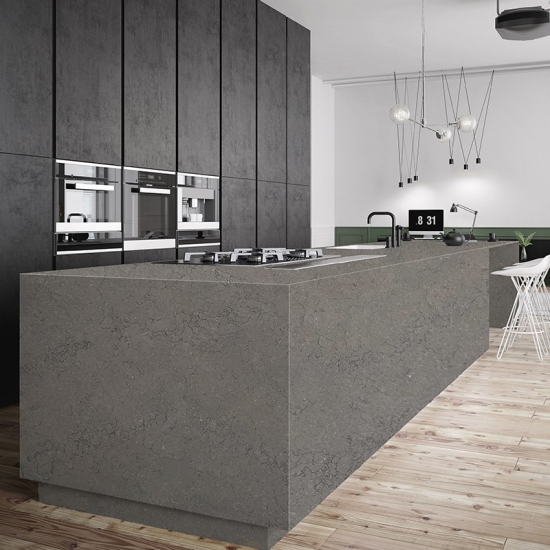 コンクリートクォーツは、特殊加工された人工石クォーツ素材です。マット仕上げに似たコンクリート仕上げは、従来のポリッシュ仕上げに比べてクォーツの色がわずかに変化します。この仕上げは、花崗岩の場合、「ブラッシュ仕上げ」とも呼ばれます。