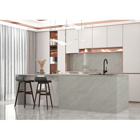 4052 アリストングレーは、シンプルでありながらエレガントなグレートーンで、控えめでモダンな美しさを演出します。傷、汚れ、熱に非常に強いクォーツで、キッチンカウンターやバスルームカウンターなど、使用頻度の高い場所に最適です。緻密な構造により、アリストングレークォーツは耐水性が高く、お手入れも簡単で、長期間美しい状態を保ちます。