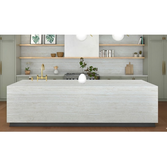 ローマントラバーチンPDプリントクォーツは、時代を超越したエレガンスが織りなす静謐な世界へと誘います。太陽の光を浴びたシルクを思わせる、柔らかく温かみのあるベージュの色合いに包み込まれた表面は、純粋さと静寂を漂わせ、視覚的に心地よく、心身を癒すような空間を演出します。繊細な縞模様は、時の流れが刻み込んだ自然の痕跡のように織り込まれ、控えめな高級感に芸術的な趣を添えています。隅々まで静かな贅沢さが漂い、あらゆる空間に歴史の深遠さが宿る静寂を漂わせます。