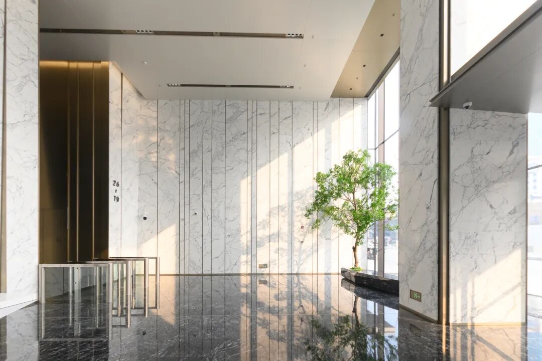 Lead8とGPが設計した杭州センターでは、カラカッタホワイトが西湖の詩情を鮮やかに表現しています。石の輝く基部は水面を映し出し、流れるような脈は山の輪郭を描き、現代的な美学と自然のインスピレーションが調和した洗練された商業環境を創り出しています。