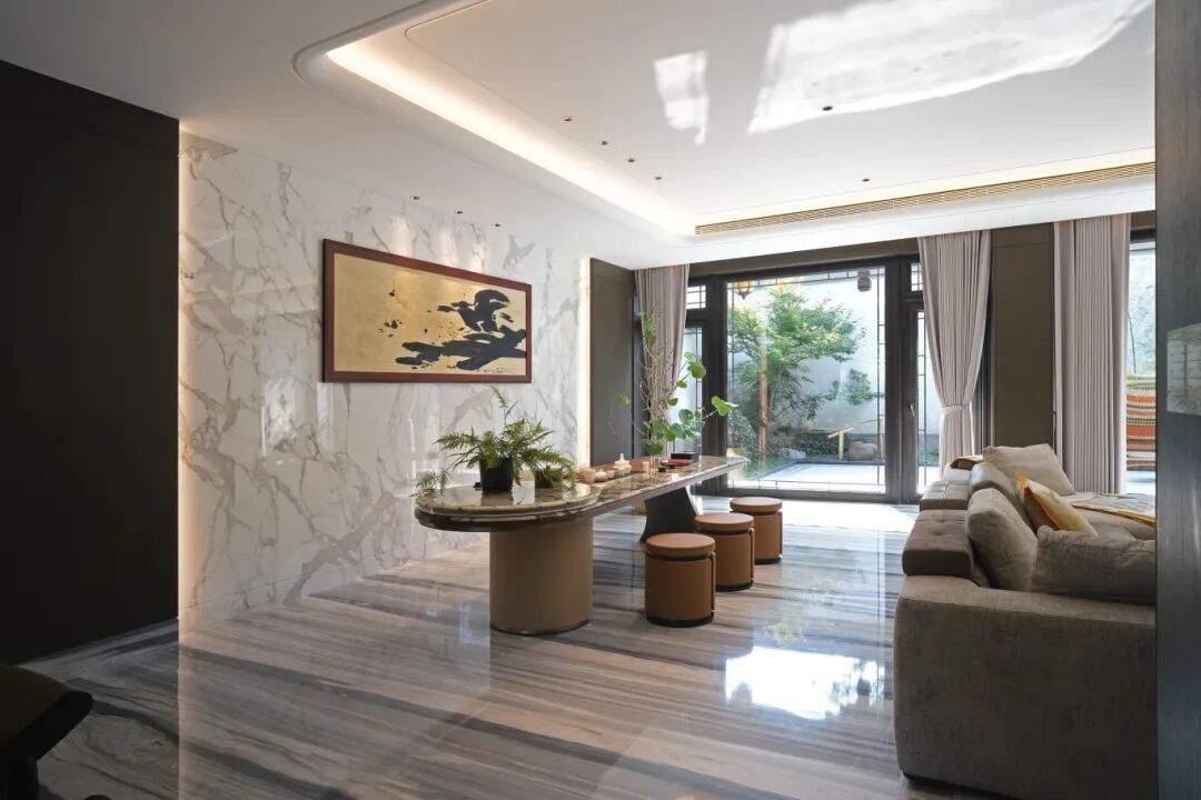 上海佘山ヴィラは、国際的なデザイン基準と東洋の住まいの理念を融合させるため、カラカッタホワイトを採用しています。その純粋な石の地色は現代的なミニマリズムを満たし、有機的な模様は「自然に潜む」という哲学と共鳴し、グローバルな視点を持ちながらも周囲の環境との深い繋がりを感じるヴィラを創り出しています。