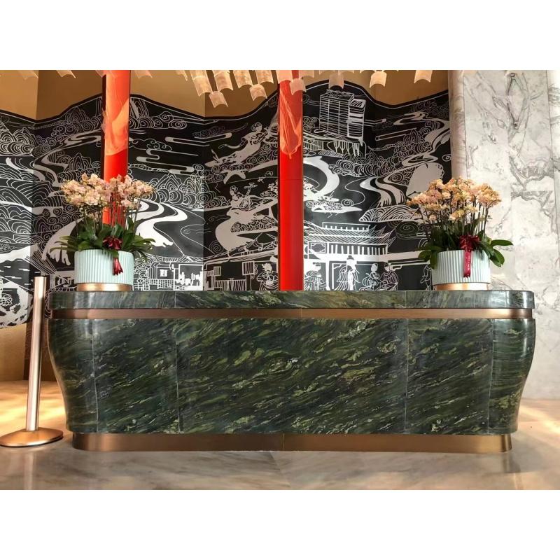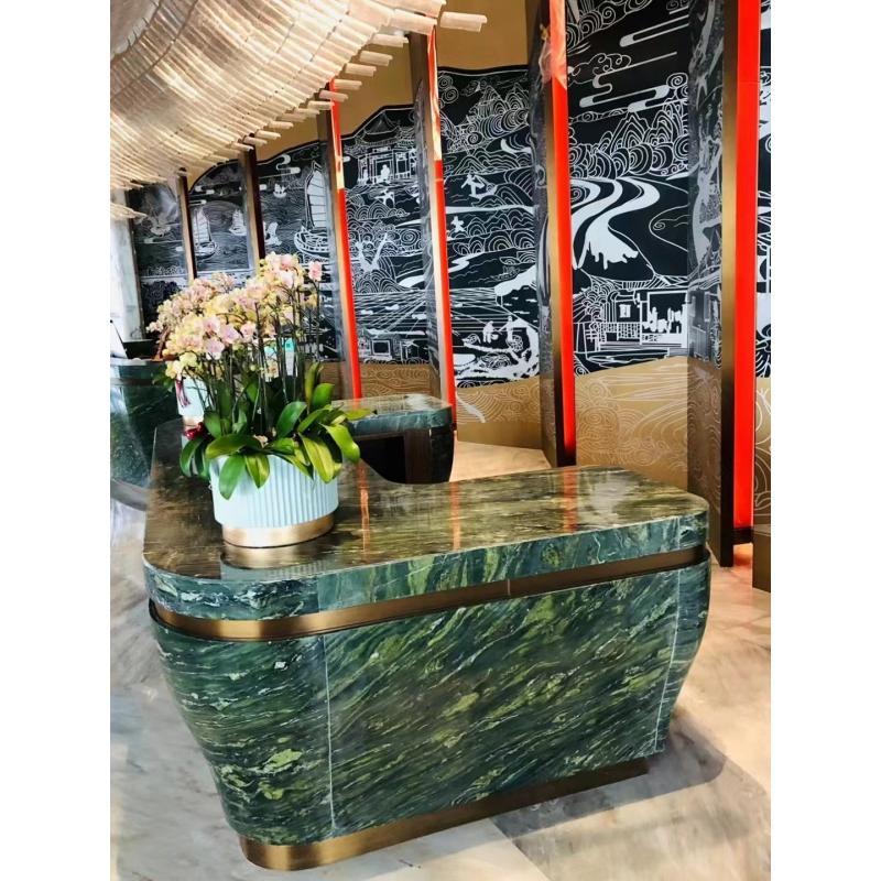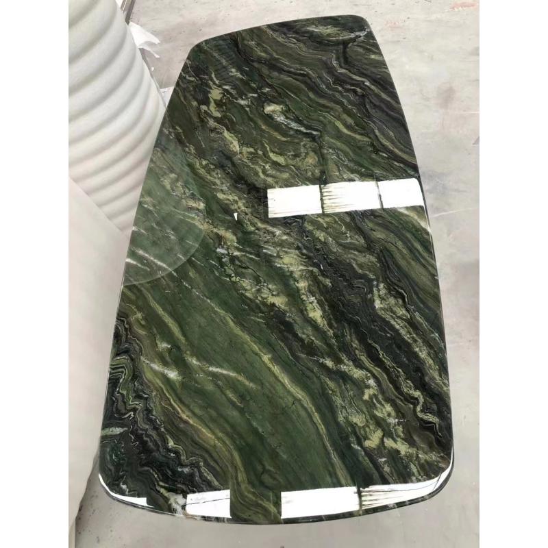 グリーンシルククォーツァイトカウンタートップ 独特の緑色の縞模様とシルクのような光沢で知られるクォーツァイトは、キッチンやバスルームに自然な優雅さをもたらします。クォーツァイトは耐久性に優れ、傷や高温にも強く、お手入れも簡単です。モダンなインテリアにもクラシックなインテリアにもぴったりのこの石は、美しさと実用性を兼ね備え、あらゆる空間に洗練された雰囲気を添えます。